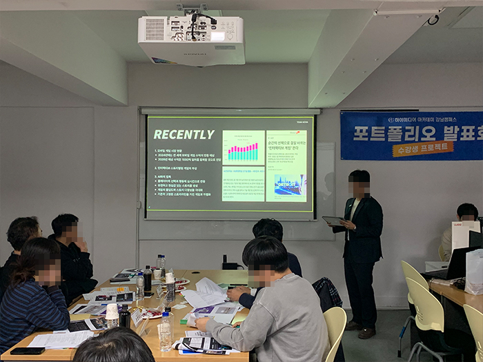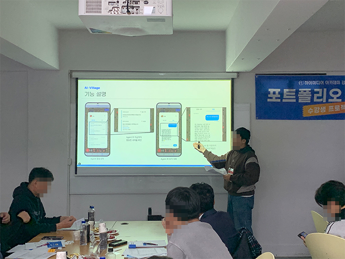 [강남] '심화_생성형 AI활용 인재양성' 부트캠프 과정 4기 프로젝트 발표회 안녕하세요.하이미디어 아카데미 강남캠퍼스에서'심화_생성형 AI활용 인재양성' 과정 4기 프로젝트 발표회가 있었습니다. 감사합니다.
