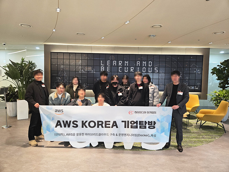 aws(아마존 웹 서비스) 코리아 기업 탐방 안녕하세요. 하이미디어 종로캠퍼스에서는' (산대특)_AWS를 활용한 하이브리드 클라우드 구축 & 운영엔지니어링(Docker)_육성 ' 과정을교육중인 훈련생들과 함께 AWS KOREA 기업 탐방을 다녀왔습니다. 기업체에서 준비한 특강과 회사 내부를 둘러보았는데,이번 기업 탐방을 통해 훈련생들에게는 보다 교육열을 높이게 되는 유익한 시간이었습니다. 감사합니다.