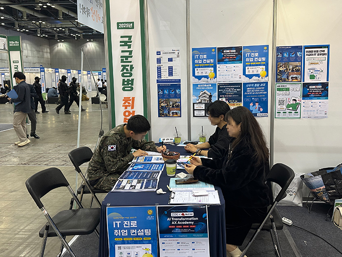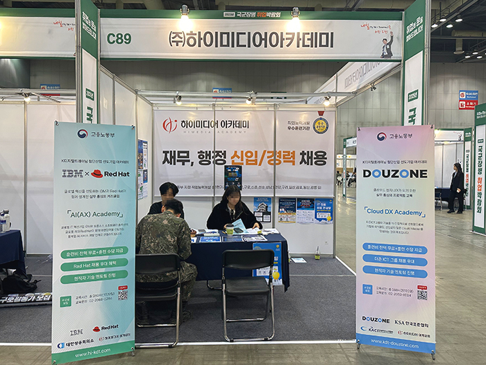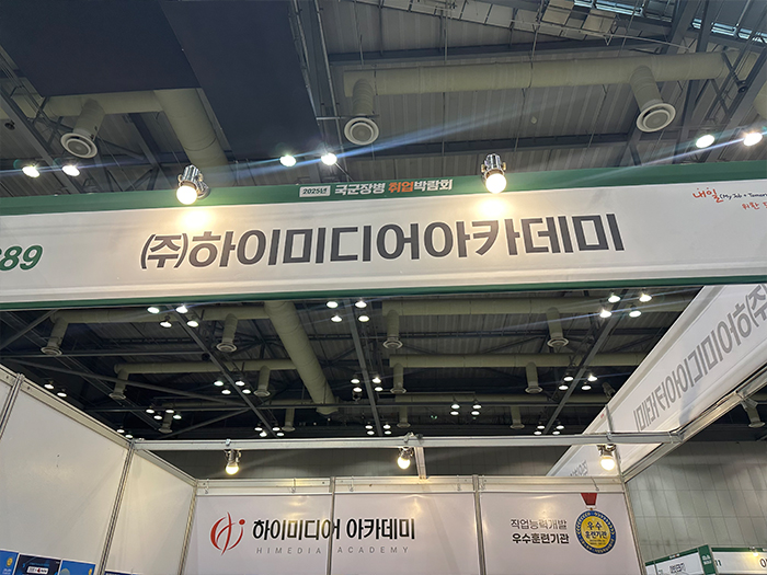 2025 국군장병 취업박람회 안녕하세요. 하이미디어 아카데미는 대한민국 국방부에서 주최하고고용노동부, 국가보훈부 등 총 21개 기관이 후원하는 2025 국군장병 취업박람회에 참석했습니다. 지난 5월 7일 일산 킨텍스 10홀에서 개최된 국군장병취업박람회는 구직장병과 구인기업간 만남의 장으로, 장병들에게는양질의 일자리 정보와 최신 고용동향을 알려주고, 기업에는 우수한 전역장병 채용 기회를 제공합니다. 앞으로도 여러분의 취업을 위해 노력하는 하이미디어 아카데미가 되겠습니다. 감사합니다.