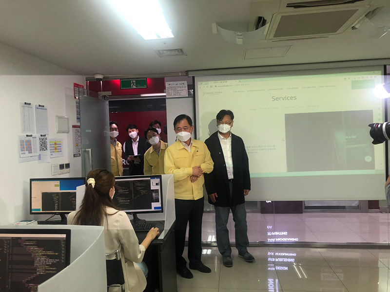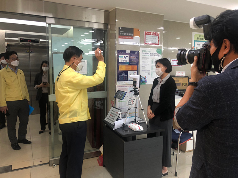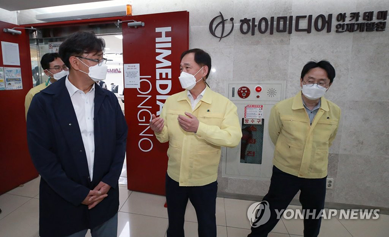 고용노동부, 코로나19 우수방역 훈련원(종로캠퍼스) 현장 점검 지난 5월 14일,고용노동부 박화진 차관을 비롯 서울지청 청장, 인적자원개발과장 등이 참석하여 직업능력개발 훈련 실시 기관인'하이미디어 아카데미 종로캠퍼스'를 방문하여 우수한 방역상황 치하하고,마스크 전달식 행사를 가졌습니다.