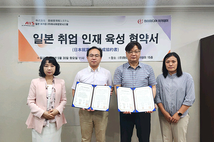 일본 SI기업 주식회사 아시아정보시스템과의 업무 협약식 하이미디어 아카데미는청년 고용 창출을 위한 일본 취업 인재 육성 협약식을일본 SI기업 주식회사 아시아정보시스템과 체결했습니다.감사합니다.