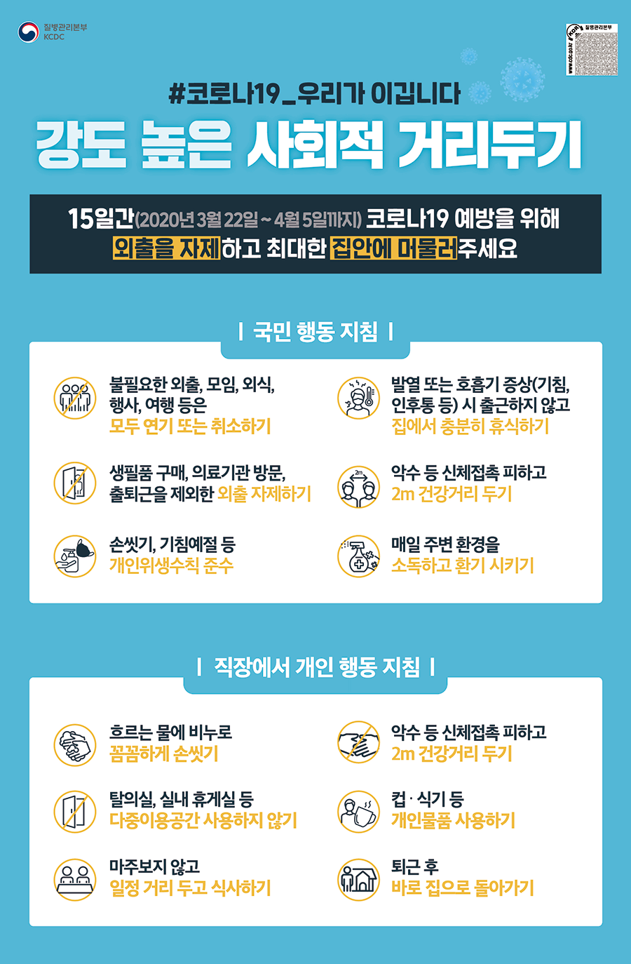 코로나19 우리가 이깁니다. 사회적 거리 두기!