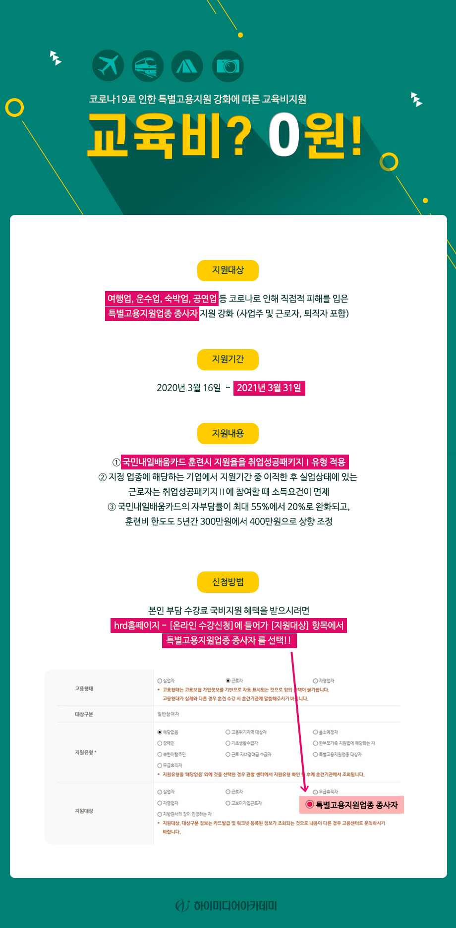 코로나19로 인한 특별고용지원 강화에 따른 교육비 지원