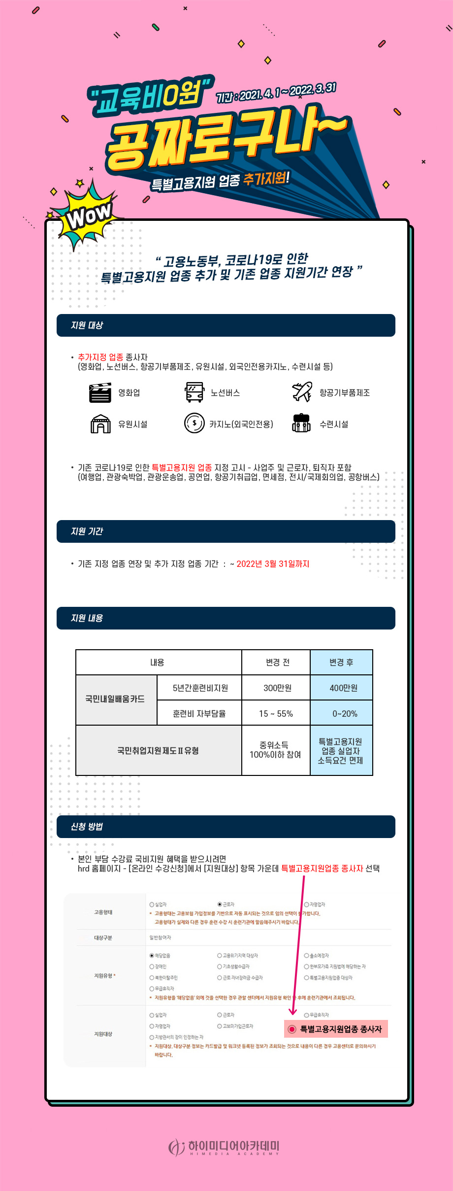 코로나19로 피해를 입은 특별고용업종 추가 및 교육비 지원 연장