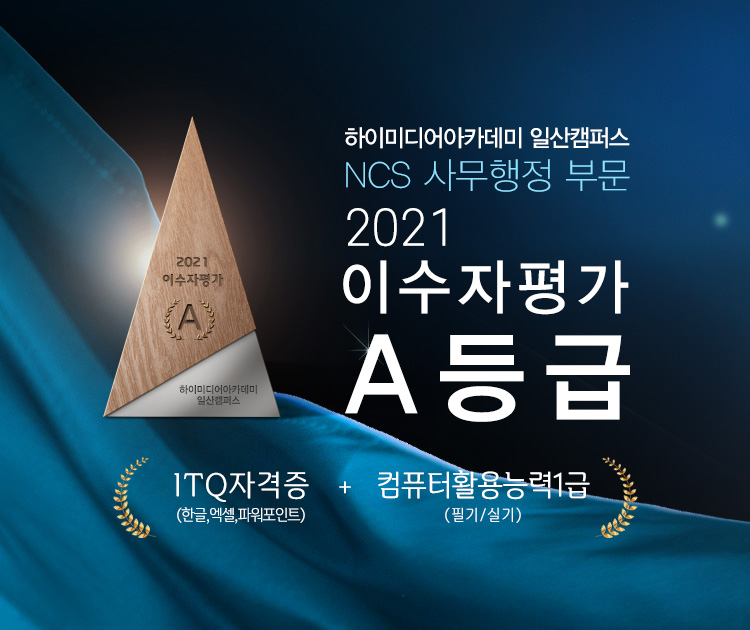 하이미디어 아카데미 일산캠퍼스가 이수자 평가 A등급을 획득하였습니다.