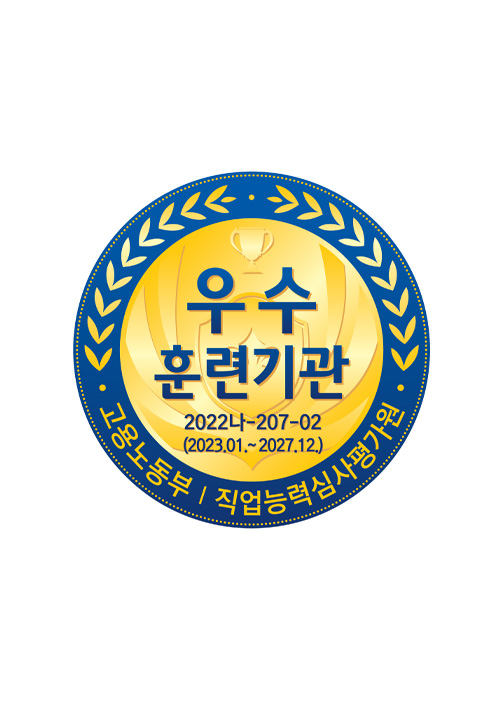 성남 캠퍼스 고용노동부 지정 우수훈련기관 성남점 5년인증 선정 Post. 2023.01.12 고용노동부는 매년 교육훈련기관을 대상으로훈련시설, 교육과정 및 운영성과, 취업시스템 등교육 훈련 인프라에 대하여 매우 엄격한 기준으로 평가하고 있습니다.하이미디어 아카데미 성남점은 고용노동부가 실시한 교육훈련기관 인증 평가에서 우수훈련기관으로 선정되어 5년 인증을 받았습니다.앞으로도 많은 관심 부탁드립니다.감사합니다.