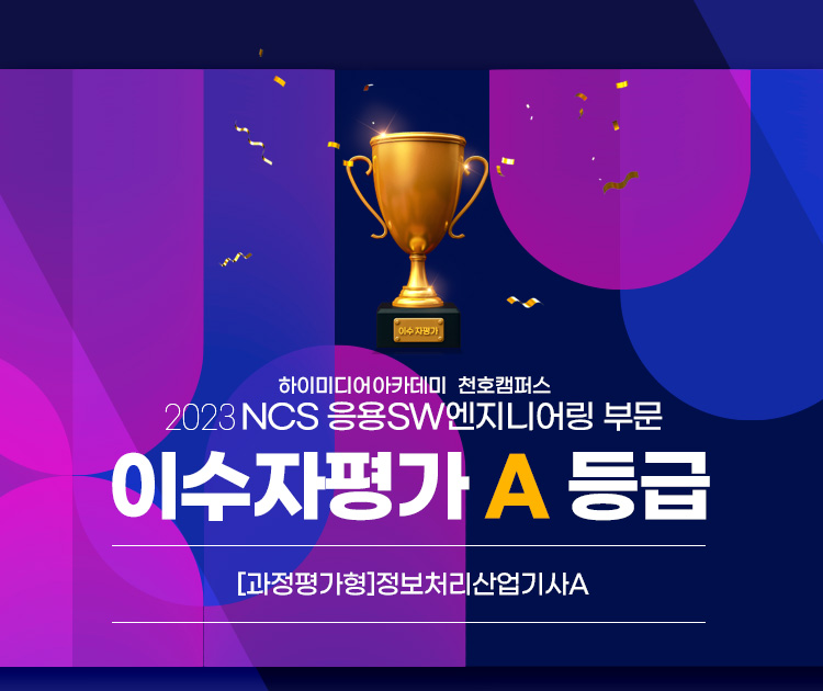 하이미디어 아카데미 천호캠퍼스가 이수자 평가 A등급을 획득하였습니다.