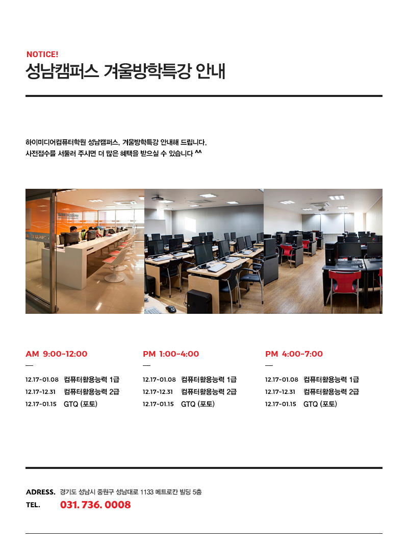 [성남캠퍼스] 2018 겨울방학특강 안내