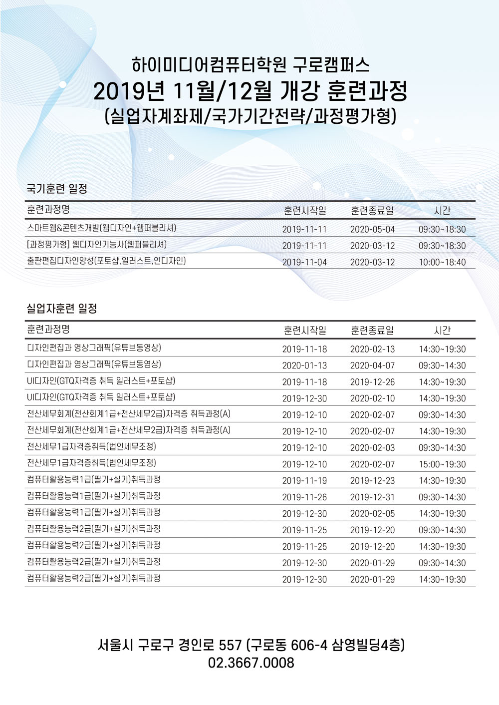 11~12월 개강 일정