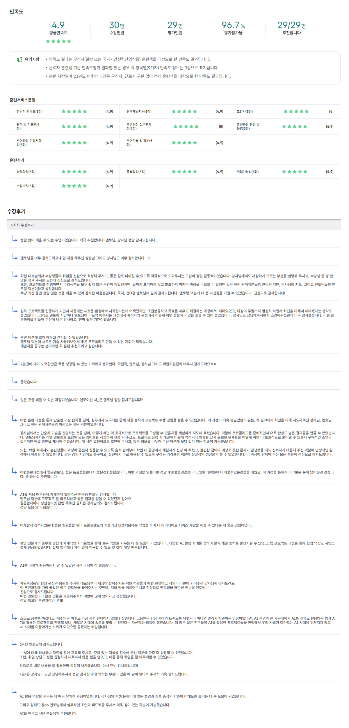 실제 과정을 수료한 수강생들의 평가를 보여드립니다!