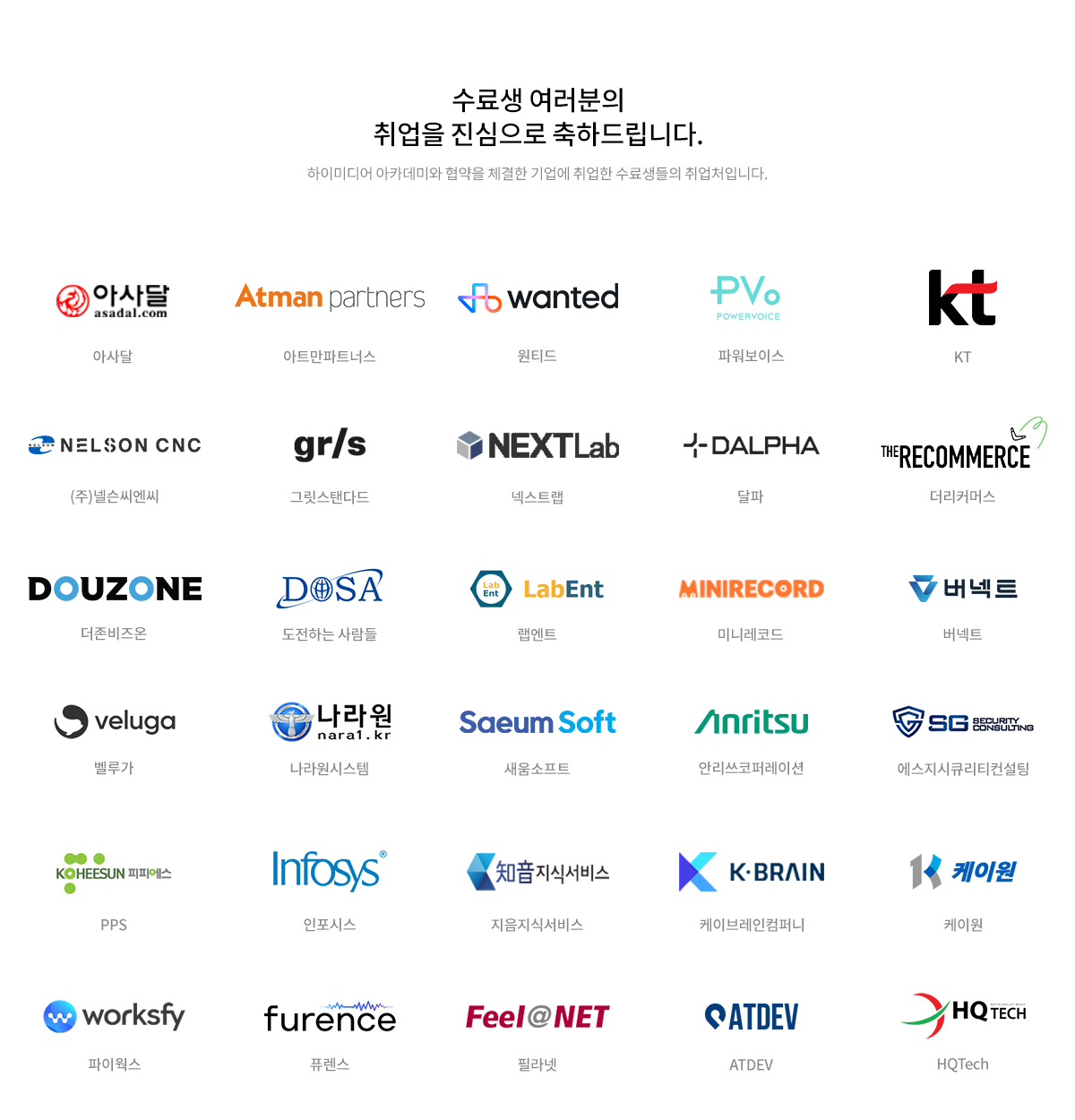 하이미디어는 최소 10년이상 실무를 경험한 현직 강사진을 구성하여 실무 프로젝트 위주의 수업을 진행하고 있습니다. 또한 이론만이 아닌 최신 트렌드를 반영한 커리큘럼과 함께 단순히 취업만이 목적이 아닌 취업후, 실무에 대한 두려움, 그리고 적응기에 대한 고민을 말끔히 해결합니다.